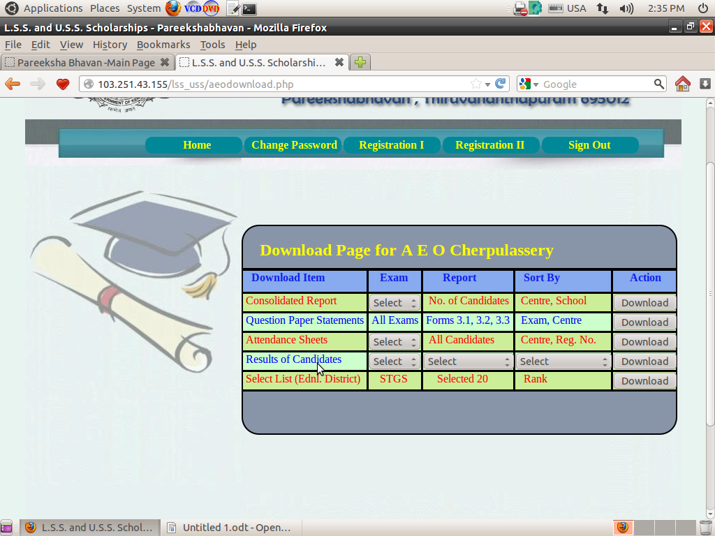 ഇവിടെ ഓരോ സ്കൂളിന്റെയും പരീക്ഷാ സെന്ററുകള് (പരീക്ഷാ സെന്റര് ആയ സ്കൂളിന്റെ കോഡ്) ചേര്ത്ത് പഞ്ചായത്ത് കൂടി ചേര്ത്ത് പേജിന്റെ അവസാനം കാണുന്ന റിപ്പോര്ട്ട് എടുത്ത് പരിശോധിച്ച് ഫൈനലാക്കുക.എ.ഇ.ഒ.യുടെ പ്രധാന ജോലി തീര്ന്നു. Downloads മെനുവില് ഇപ്പോഴുള്ളത് പ്രകാരം ഓരോ പരീക്ഷയുടെയും കണ്സോളിഡേറ്റഡ് റിപ്പോര്ട്ട് എടുക്കാം. ആയത് പലതരത്തില് സോര്ട്ട് ചെയ്ത് അവിടെനിന്നെടുക്കാം.